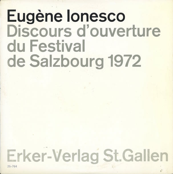 Eugène Ionesco Discours d'ouverture du festival de Salzbourg 1972 Erker-Verlag St.Gallen - Pressung Turicaphon AG durée : 00:29:12